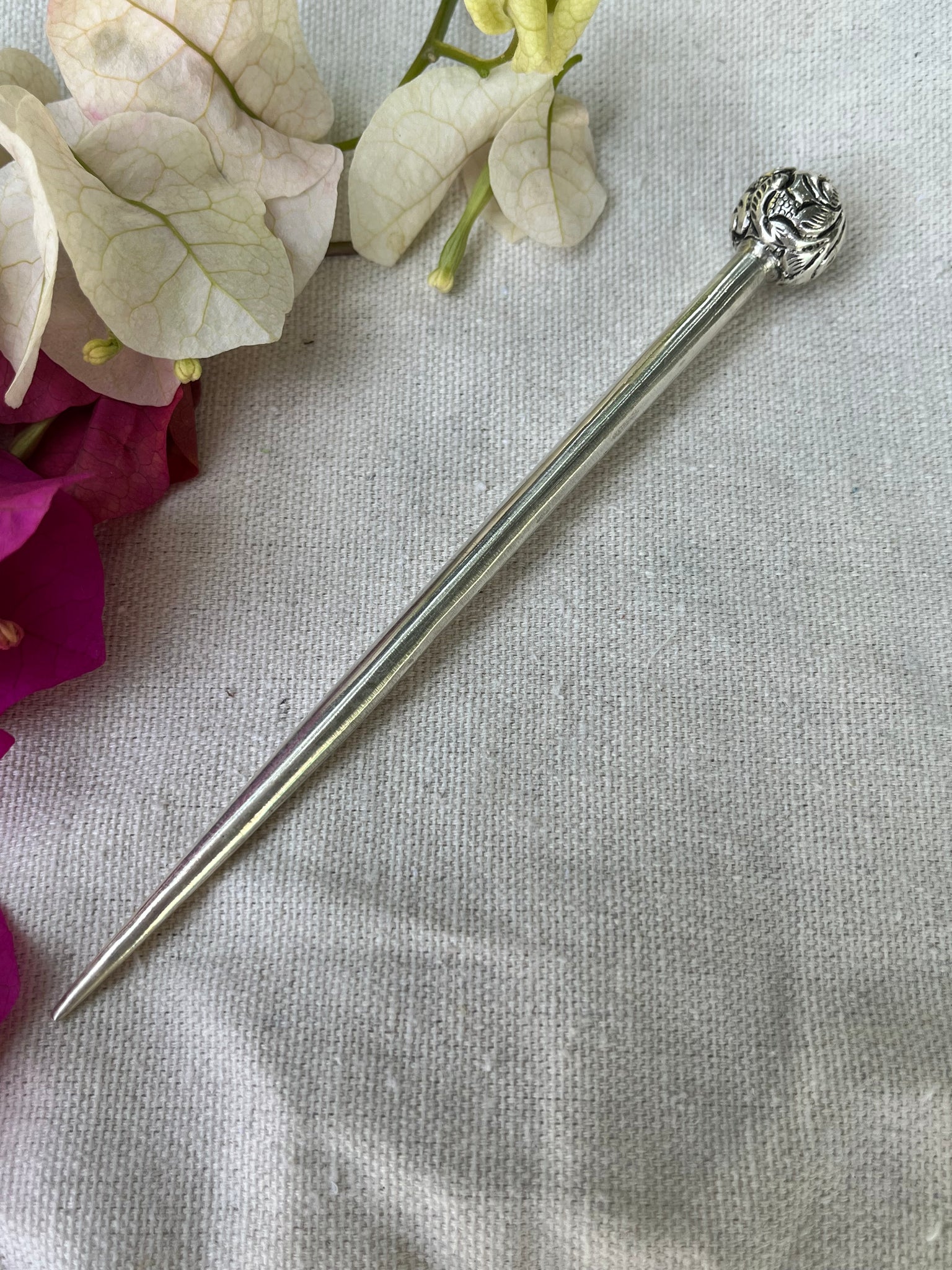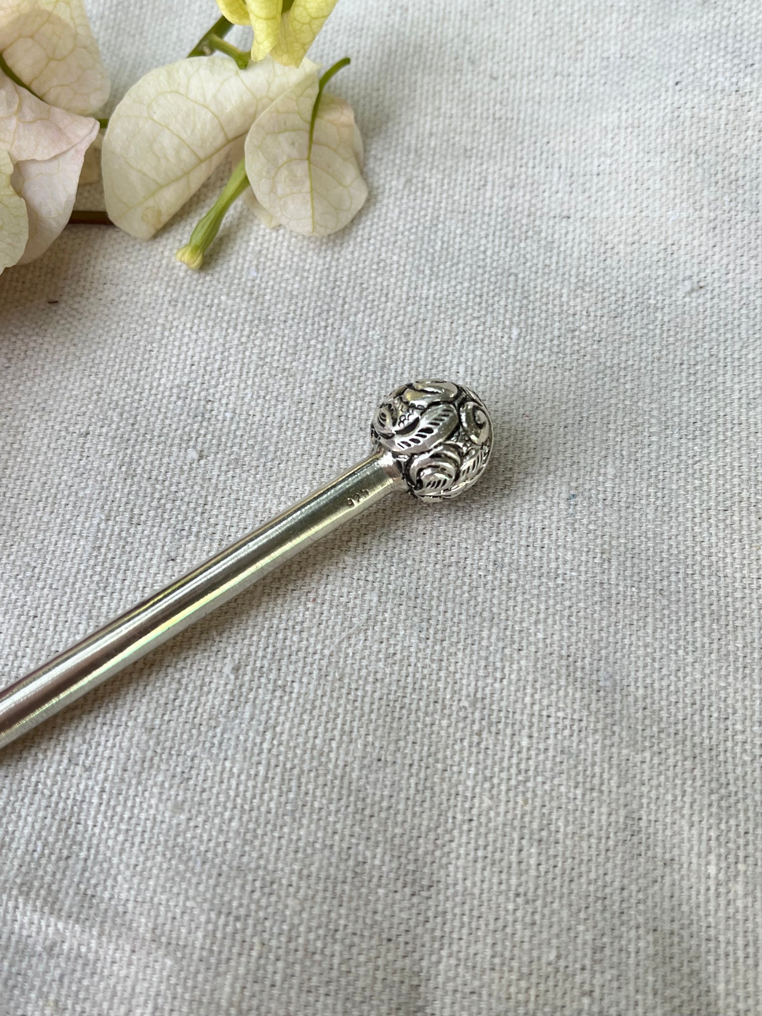 Handcrafted chitai work ball juda stick for medium to long hair.