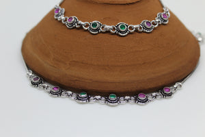 Beautiful adakari multicolor stone sequence anklet with stone drop hanging to enhance the beauty of your ankle.